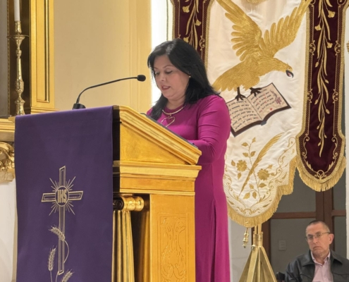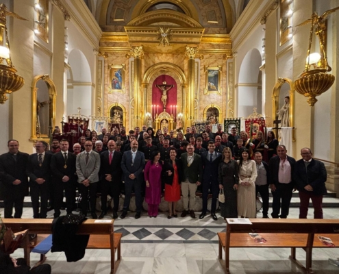 El acto estuvo organizado por la Junta de Cofradías, que quiso reconocer la trayectoria y compromiso de Oliva Almela con la entrega de una placa conmemorativa y un ramo de flores. La presentación corrió a cargo de la presidenta del colectivo, Loli López Egidos, quien destacó la implicación de la pregonera tanto en el ámbito cofrade como en su labor solidaria.